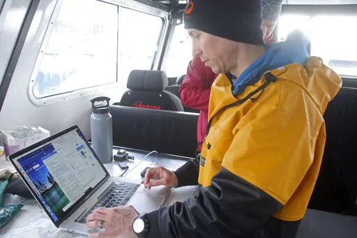 After its first nighttime mission, a crew member spotted it bobbing in the water, and the Nanuq — the Inupiat word for polar bear — backed up to let people pull the 130-pound (59-kilogram) glider onto the ship. Then the sensor was removed from the drone and rushed into the ship’s cabin to upload its data.
