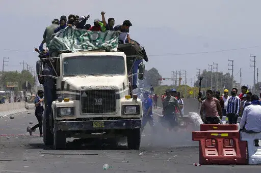 Many businesses in that community remained closed on Tuesday, with streets blocked by burned tires, rocks and tree branches. About 3,000 people, including peasants from nearby villages and teachers, again marched calling for Boluarte's resignation.