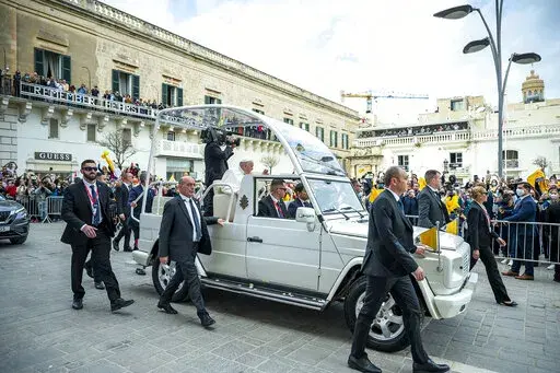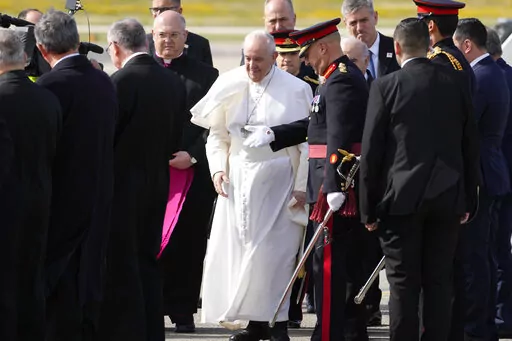 Francis also said the war had pained his heart so much that he sometimes forgets about the pain in his knees. Francis has been suffering for months from a strained ligament in his right knee. The inflammation got so bad that the Vatican arranged for a tarmac elevator to get him on and off the plane for Saturday’s flight to Malta, and his limp was more pronounced Saturday.