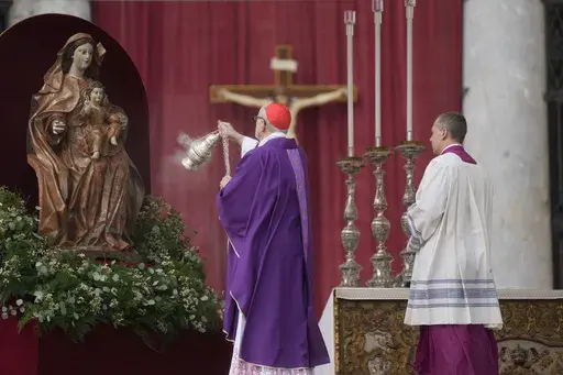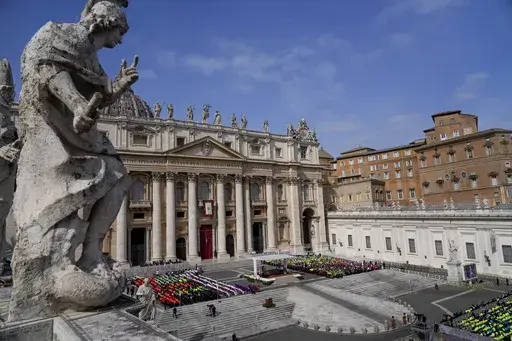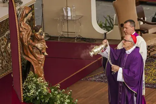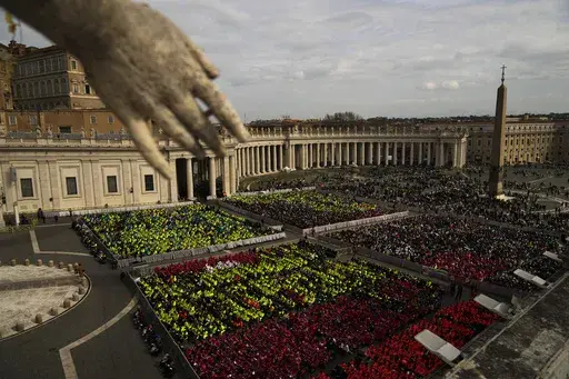 During the Mass in St. Peter's Square, the giant banner bearing Francis' papal coat of arms fluttered from the loggia of the basilica above. Even while in the hospital, Francis is very much still the pope and in charge of the Catholic Church.