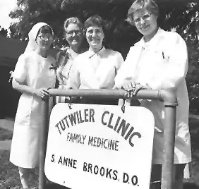 The four Sisters of the Holy Names of Jesus and Mary who reopened the Tutwiler Clinic on Aug. 15, 1983, are, from left, Sister Zenon D'Astous, RN; Sister Josephine Paleveda; Sister Rita D'Astous; and Sister Anne Brooks, doctor of osteopathy. (Photo courtesy of Tutwiler Clinic)
