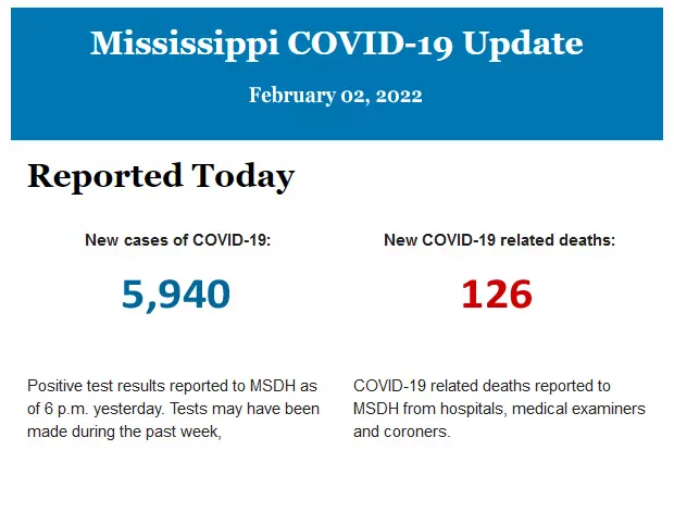 Listed below is the daily COVID-19 update for the state of Mississippi.