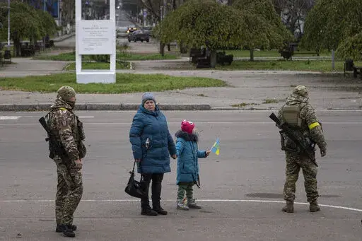 KHERSON, Ukraine (AP) — Russian shelling cut off power in much of the recently liberated Ukrainian city of Kherson on Thursday, just days after it was restored amid Moscow's ongoing drive to destroy key civilian infrastructure as freezing weather sets in.