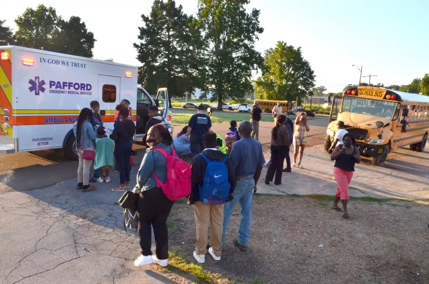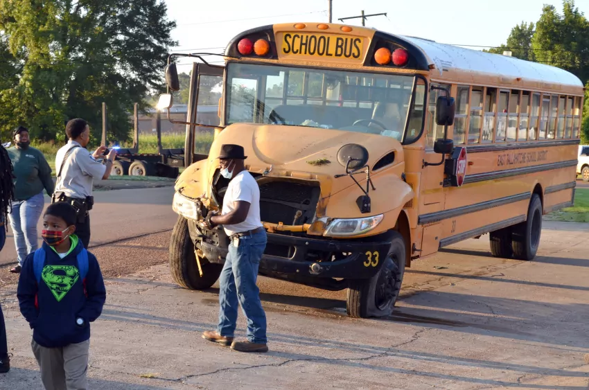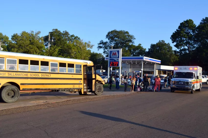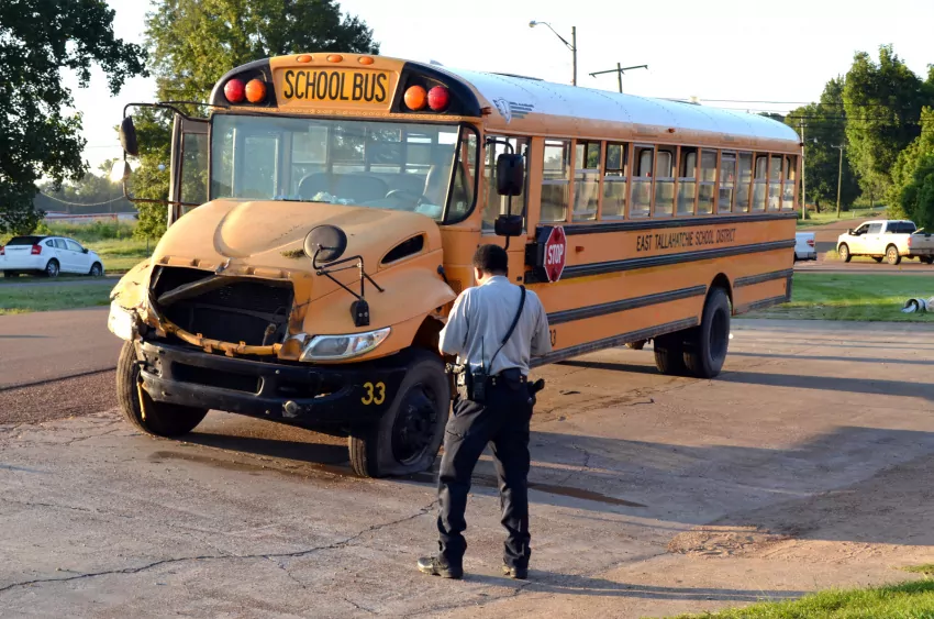 East Tallahatchie School District bus No. 33 was transporting about three-dozen students at the time, according to an estimate provided by police at the scene. An exact count was not immediately available.