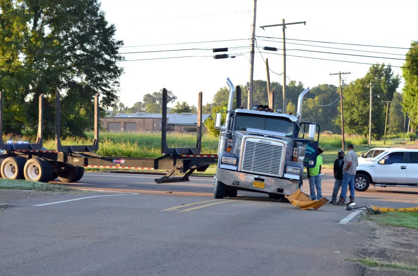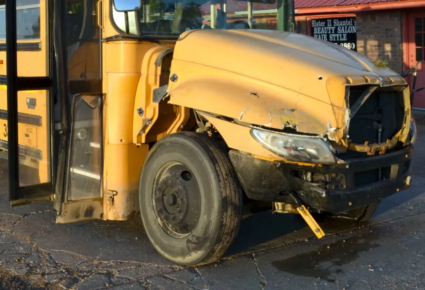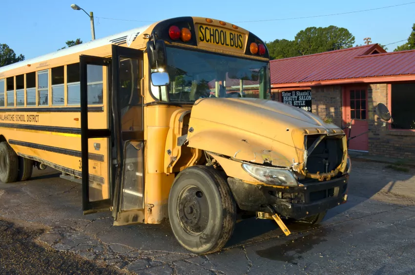 The northbound school bus reportedly was crossing the boulevard from South Cossar to North Cossar when the westbound log truck, which was not hauling any logs at the time, struck the front side of the bus.