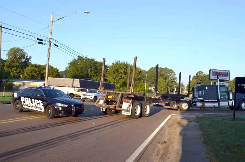 A log truck struck a school bus during the morning commute Wednesday in Charleston.