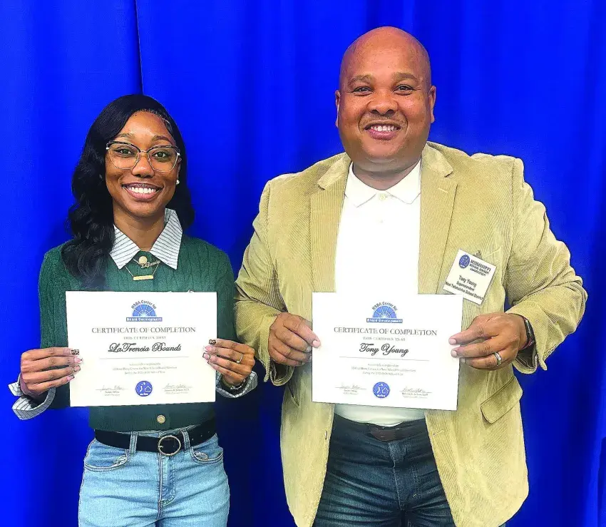 West Tallahatchie School District board member LaTrencia Bounds, left, and Superintendent Tony Young display certificates of completion received from the Mississippi School Boards Association Center for Board Development after achieving 12 hours of basic course instruction for new school board members.