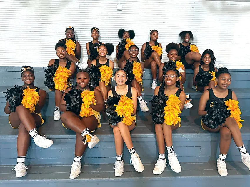 Members of the Charleston Middle School cheer team for 2025-26 are, seated in front, from left, Ireanna Love, Cassidee Patterson, Madisyn Taylor, Skylar Tellis and Alaysia Ross. In the second row, from left, are Kylie Cashaw, Acaija Harris, Makenzie Kelly, Endee Meeks and Aurielle Smith. In back, from left, are Adaysia Townes, Makenzie Tinnion, La’Miyah Brown, Tamoria Meeks and Desiraye Terry. Kimberly Taylor is cheer coach. Shaquita Prince is assistant cheer coach. (Photo by LaDon Taylor)