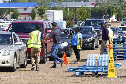 JACKSON, Miss. (AP) — Mississippi officials set up emergency distribution centers for handouts of water and hand sanitizer Thursday in the capital city of Jackson, as efforts to restore a flood-impaired, long-troubled water system continued.