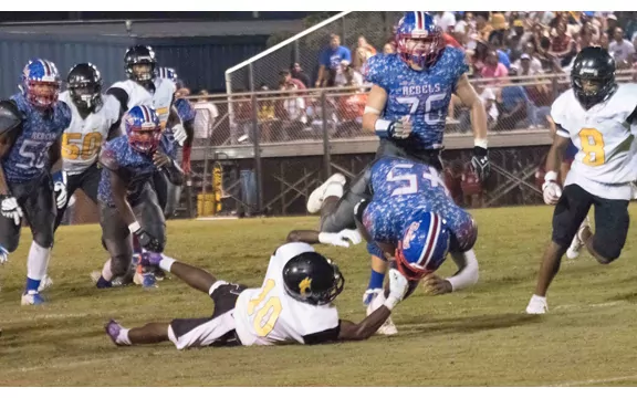 The Rebels stopped a fake punt attempt with about 5 minutes in the half and drove methodically to inside the CHS red zone. The Tiger defense made a stand when a fourth-and-goal play inside the Charleston 2 was rejected.