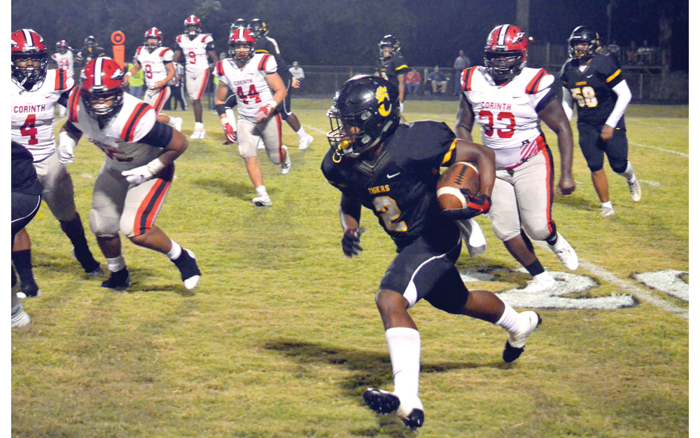Corinth went three-and-out and the two teams swapped fumbles in the first 3 minutes of the game before the Tigers’ Keyshun Cashaw exploded up the middle and outran defenders for a 76-yard touchdown with 8:30 in the first quarter. The conversion failed, but Charleston led 6-0.
