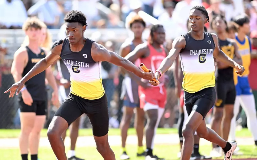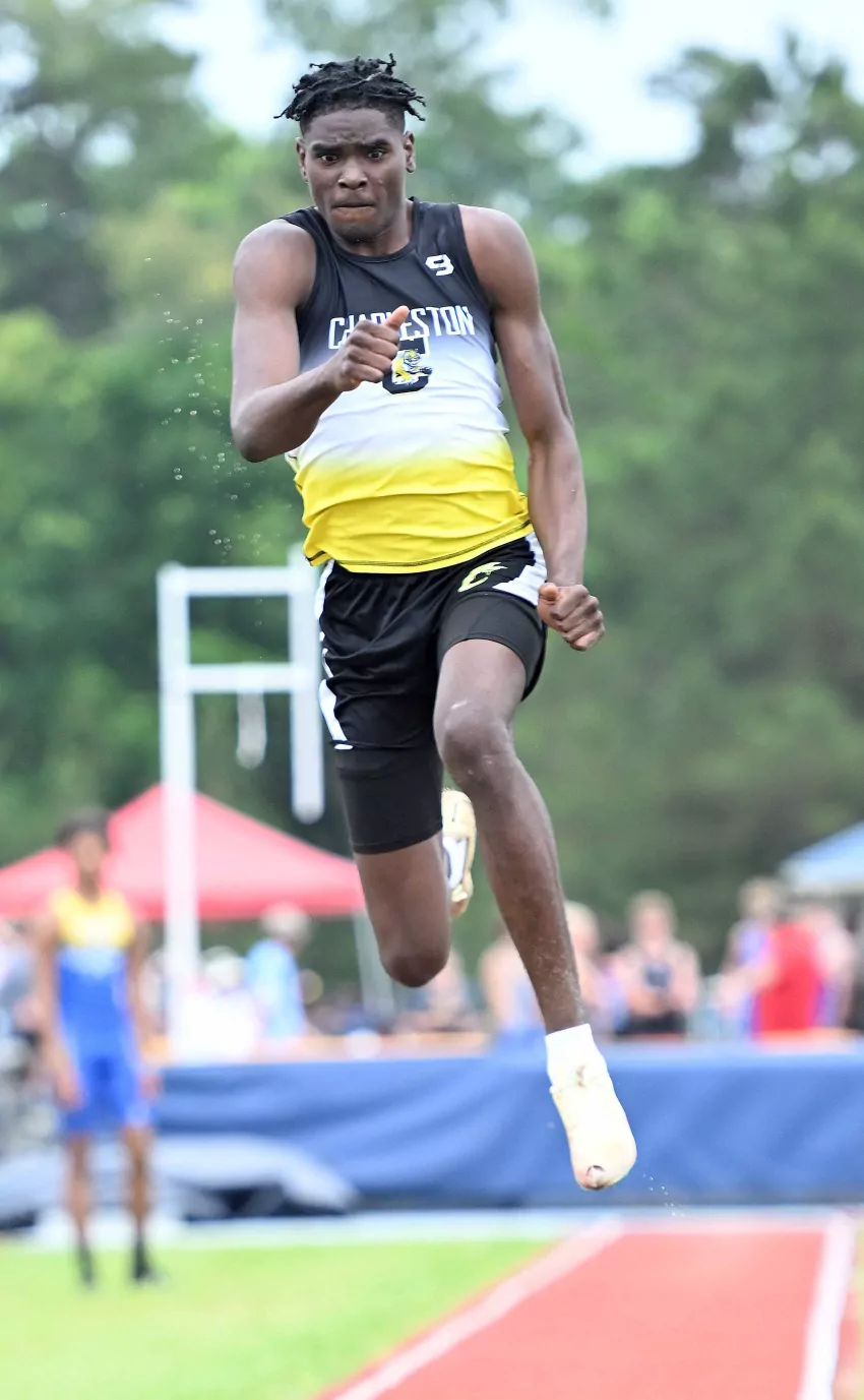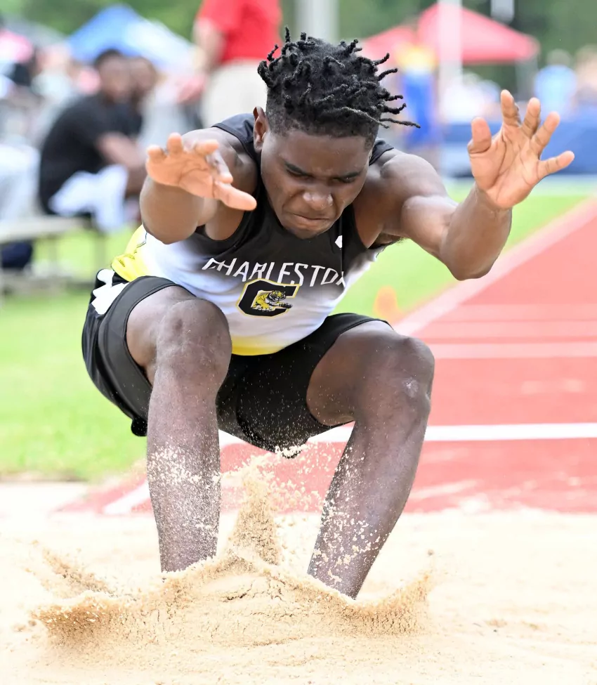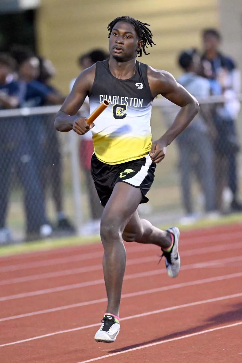 » The 4x100 relay team comprised of sophomore Alena Collins, sophomore Tykeria Davis, junior Diekyra Bradford and Amia Wright won first-place gold (49.96). Charleston’s girls also won this race last year.