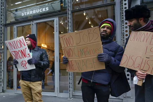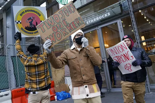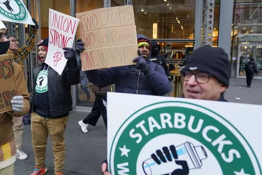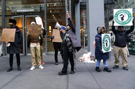 Others, including Michelle Eisen, a union organizer at one of the first stores to organize in Buffalo, New York, said workers are angry that Starbucks promised higher pay and benefits to non-union stores. Starbucks says it is following the law and can't give union stores pay hikes without bargaining.