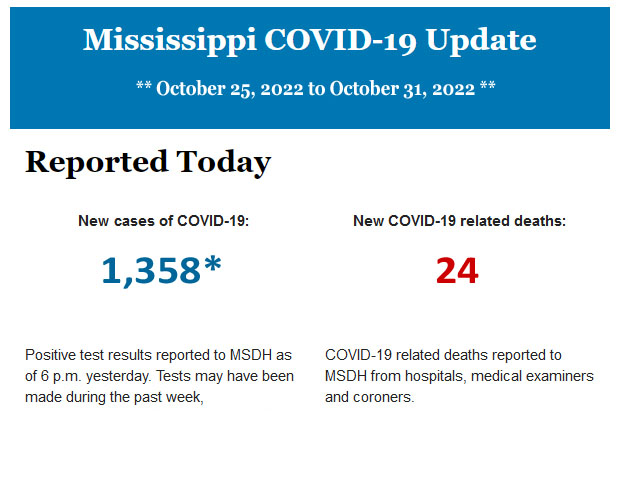 *New COVID-19 positive test results reported to MSDH for October 25 - October 31.
