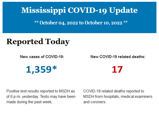 *New COVID-19 positive test results reported to MSDH for October 04 - October 10.