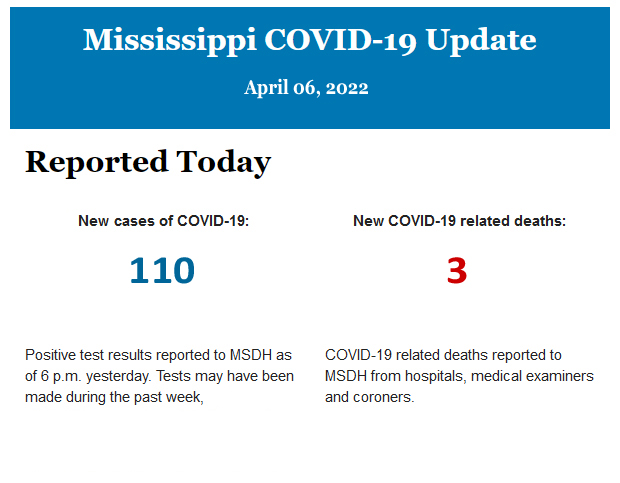 Listed below is the daily COVID-19 update for the state of Mississippi.
