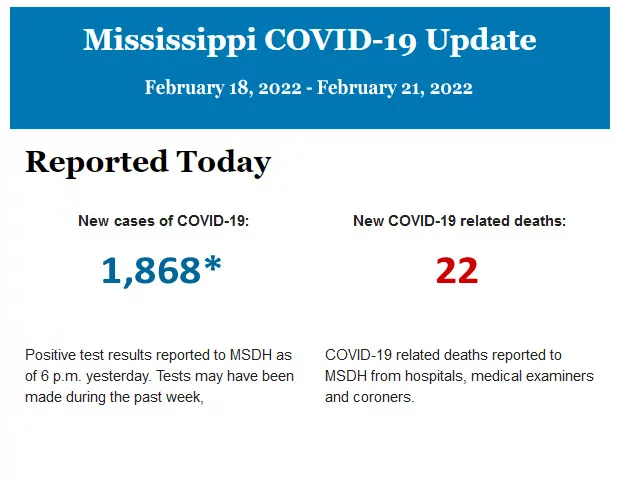 Listed below is the daily COVID-19 update for the state of Mississippi.