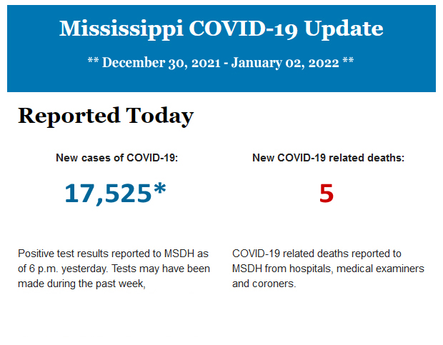 Listed below is the daily COVID-19 update for the state of Mississippi.