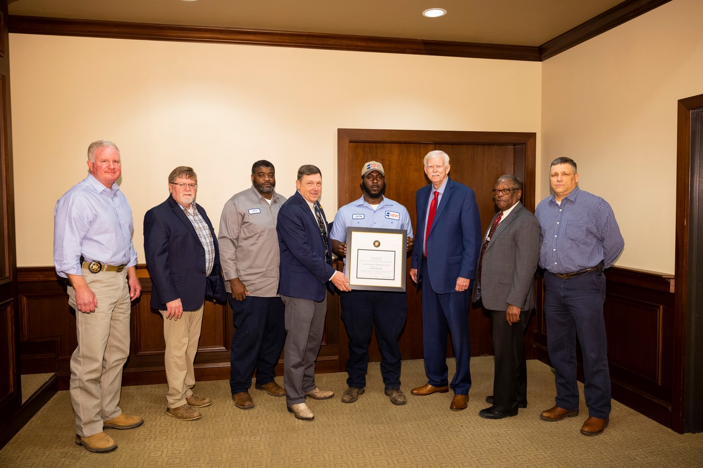 On Tuesday, Feb. 14, Mississippi Transportation Commissioners recognized Mississippi Department of Transportation (MDOT) employee Jamie Hearn for his bravery in assisting with the capture of an armed robbery suspect. Hearn, who works in the maintenance division in Carroll County, has been with MDOT since May 2022.