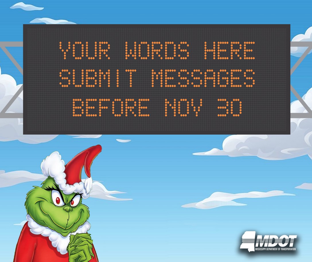 Traffic safety messages appear on DMS boards along highways and interstates throughout Mississippi. These 12 days of messages will revolve around Christmas-themed movies, songs, and characters. However, any local emergency messages and traffic updates automatically override scheduled messages already on the DMS boards.
