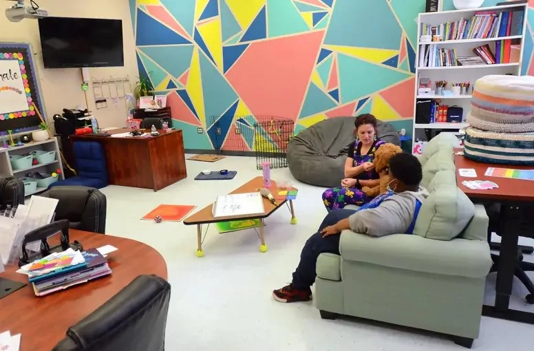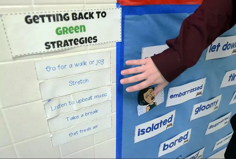 “For the next 10 minutes, the students all discussed their feelings, saying ‘Oh, I’m in the red zone when I’m taking a math test’ and joking like that, but then also sharing what coping skills work for them,” Sims said. “So the teacher then led almost a group therapy session.”