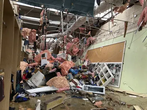 One tornado veered just west of Iowa City, home to the University of Iowa. Video from KCRG-TV showed toppled power poles and roofs ripped off an apartment building in the suburb of Coralville and significantly damaged homes in the city of Hills.