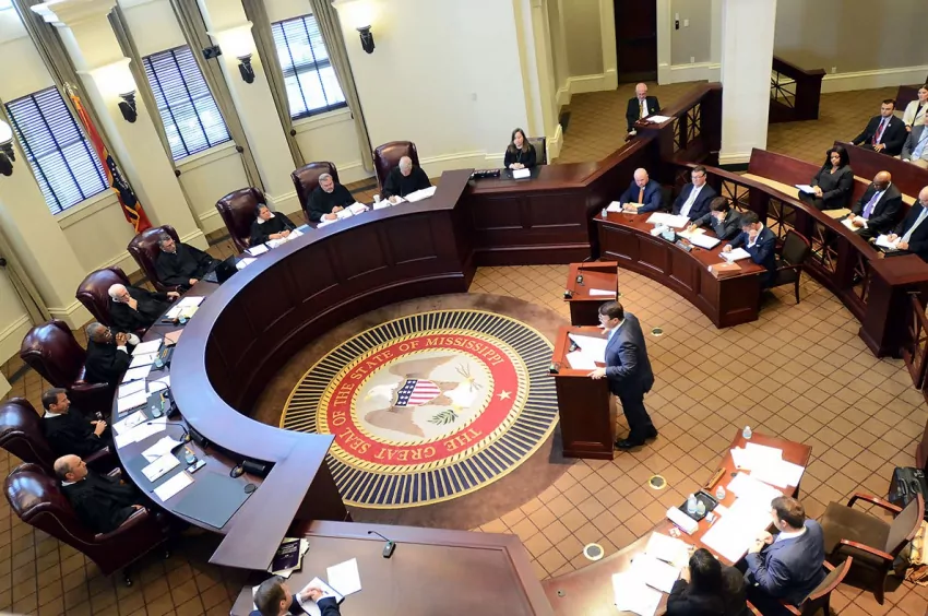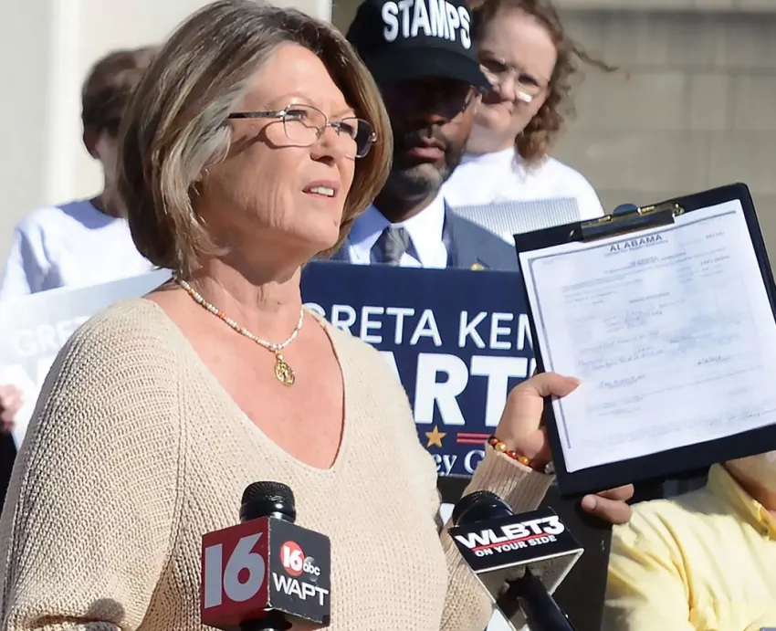 Penny Warner (center), aunt of Tasha Shelby, who has been incarcerated for 23 years, talks about her niece's plight and alleged innocence during a press conference held by Democratic candidate for Attorney General, Greta Kemp Martin. Martin spoke of how she will serve Mississippians from all walks of life if elected, Tuesday, Oct. 24, 2023. Credit: Vickie D. King/Mississippi Today