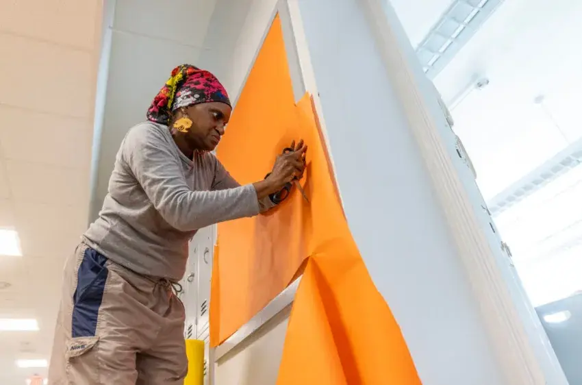 Shelves half-filled with books lined the walls of the muggy Bailey APAC Middle School library, where a handful of volunteers assembled equipment, painted ceilings and sorted through boxes.