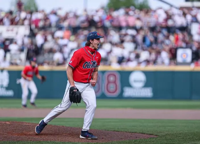 The Ole Miss Rebels didn’t have Jake Mangum to kick them around Friday night. But Mississippi State’s deep, talented pitching did the job anyway in the Bulldogs’ 5-2 victory before an announced crowd of 10,291 fans that might well have been even larger.