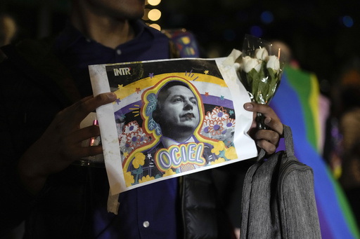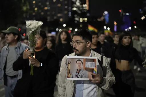 MEXICO CITY (AP) — Thousands marched in Mexico's capital Monday night demanding justice for Jesús Ociel Baena, an influential LGBTQ+ figure who was found dead at home in the central city of Aguascalientes after receiving death threats.