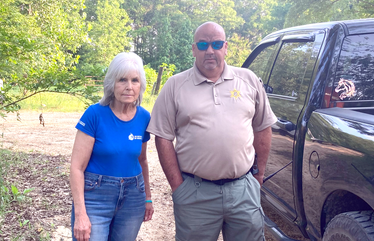 In Defense of Animals' Justice for Animals senior campaigner Doll Stanley, left, is pictured with Tallahatchie County Deputy Sheriff Jerry Williams II near the scene where two horses were rescued. (Photo special to The Sun-Sentinel)