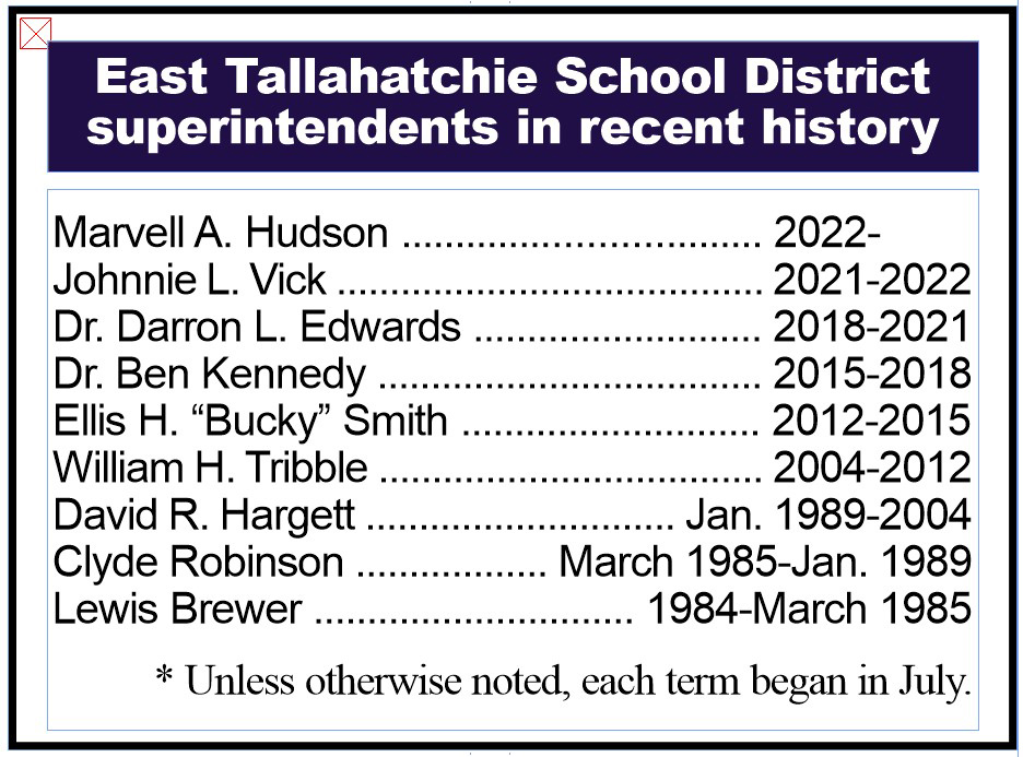 Charleston native Marvell Hudson is to be the new superintendent of the East Tallahatchie School District and was present in an unofficial capacity at the June 9 regular monthly meeting of the district’s Board of Trustees.