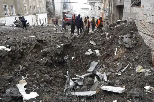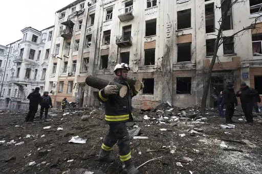 On the battlefield, Kharkiv regional governor Oleh Syniehubov said four people were injured Sunday when a Russian S-300 missile fell near an apartment block in Kharkiv city, and another was hurt when a missile hit a university building. Video showed the building hit was the National Academy for Urban Economy, about 700 meters from the city's central square.