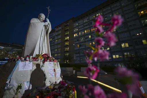 Francis has been at Rome’s Gemelli hospital since Feb. 14 for a complex lung infection that turned into pneumonia in both lungs. He has been receiving respiratory and physical therapy to help strengthen his lungs.
