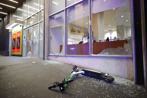 Atlanta Police Chief Darin Schierbaum said during a news conference that authorities made six arrests Saturday and recovered explosive devices after the protesters damaged property along Peachtree Street, a corridor of hotels and restaurants. He said authorities halted the violence within two blocks and no citizens or law enforcement officers were injured.