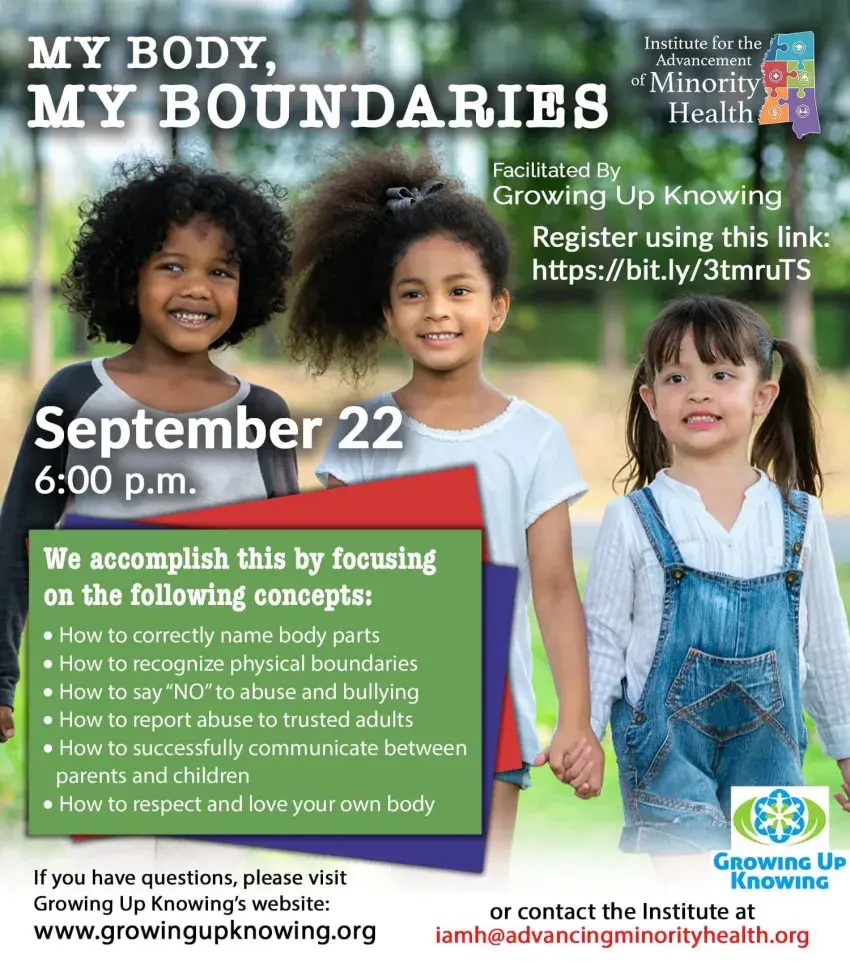 RIDGELAND – The Institute for the Advancement of Minority Health and Growing Up Knowing will host a virtual session for parents and children to promote safety and healthy decision-making.